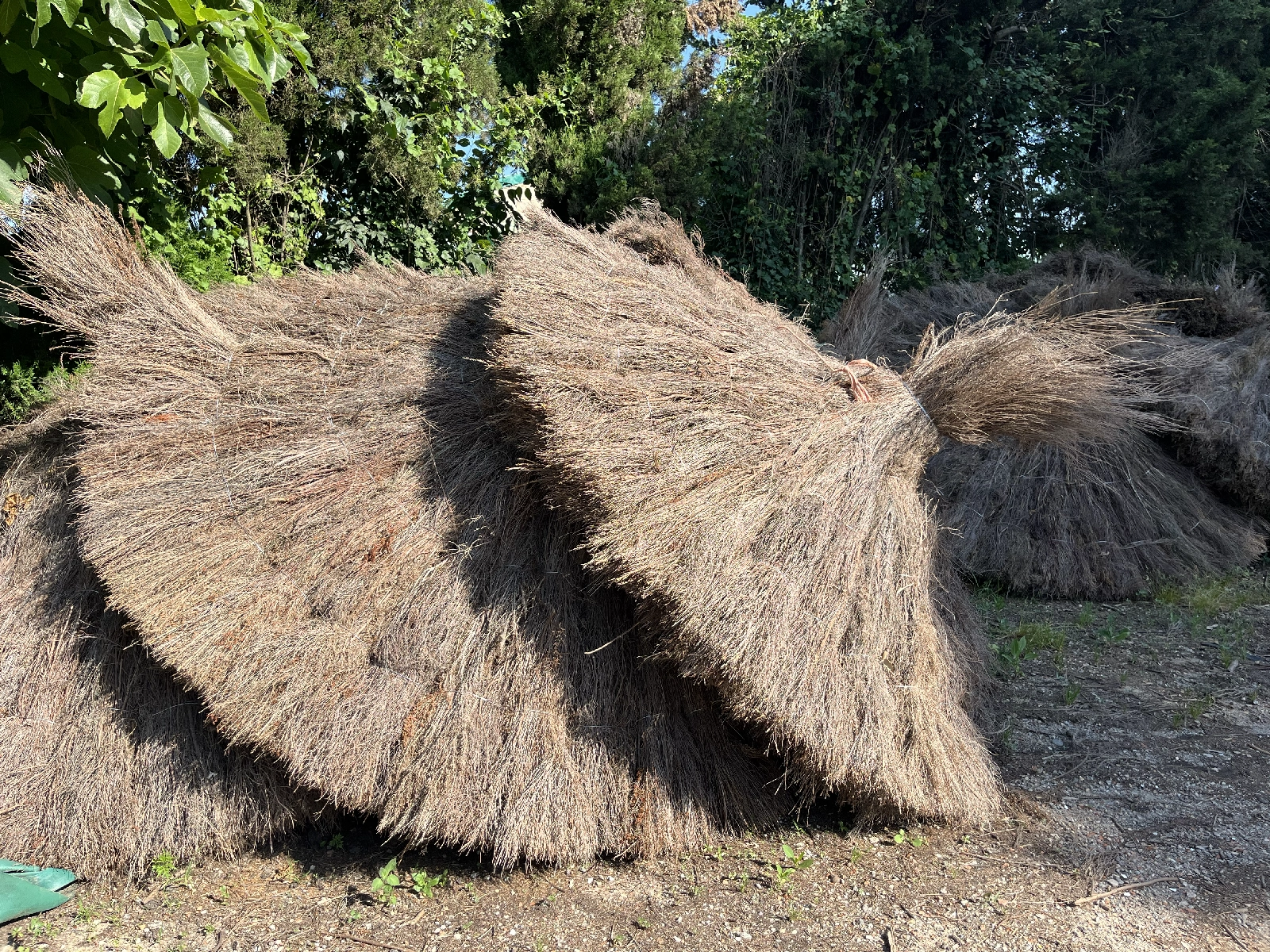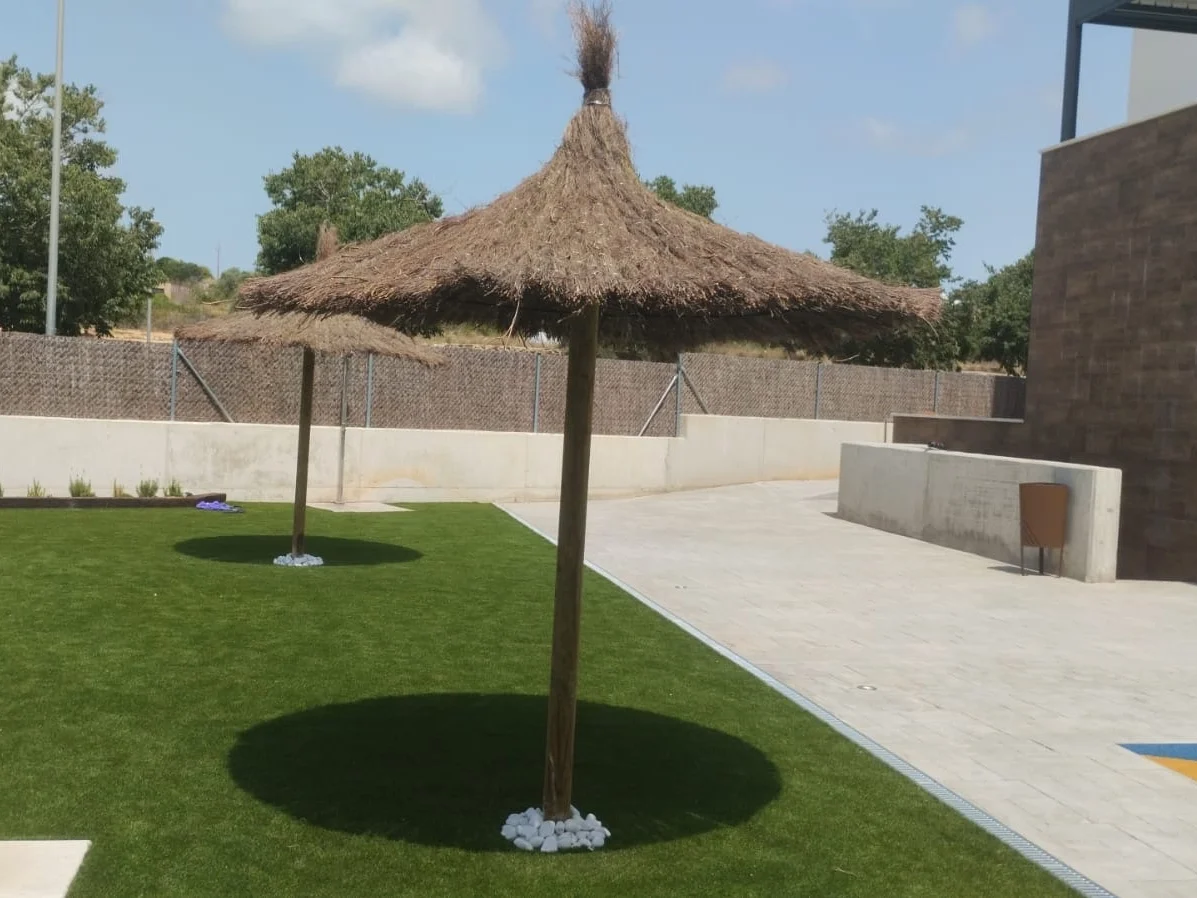 Para-sol de bruc 100% natural, elaborat de manera artesanal. El preu inclou el bruc, l’estructura metàl·lica i el pal de fusta tractat amb autoclave.