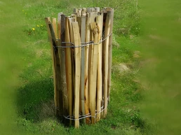 Los rollos de valla empalizada se elaboran con madera natural de castaño pelada. Se tejen con alambre galvanizado par aumentar su robustez y hacerlas más duraderas.